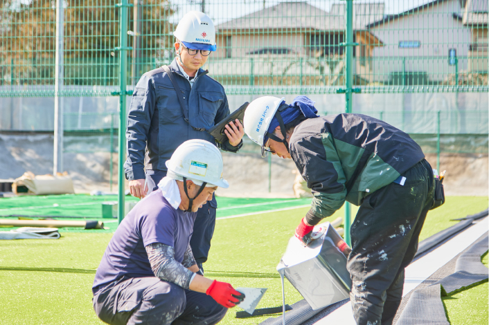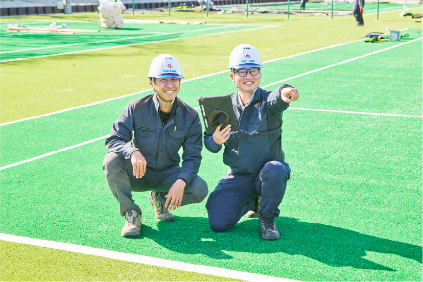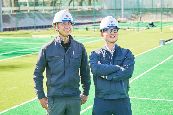 - 今後の目標は、屋外体育施設の現場で、より規模や難易度の高い工事を安心して任せてもらえる存在になることです。そのために、施工管理や専門知識をさらに深めるとともに、設計段階から関われる力を身につけたいと考えています。また、チーム全体が安全に、効率よく動ける現場づくりにも引き続き取り組んでいきたいです。