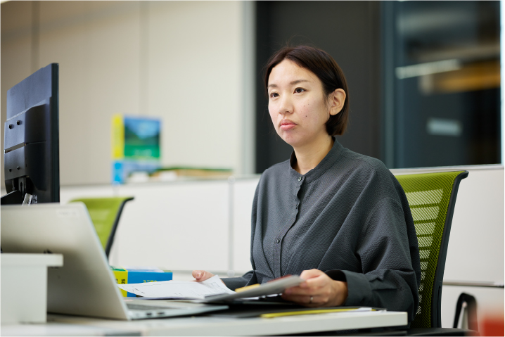 施工管理として、屋外で毎日働いていましたが、今は会社で書類作成業務を行っています。